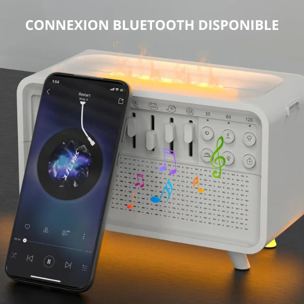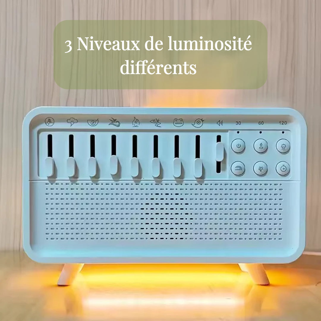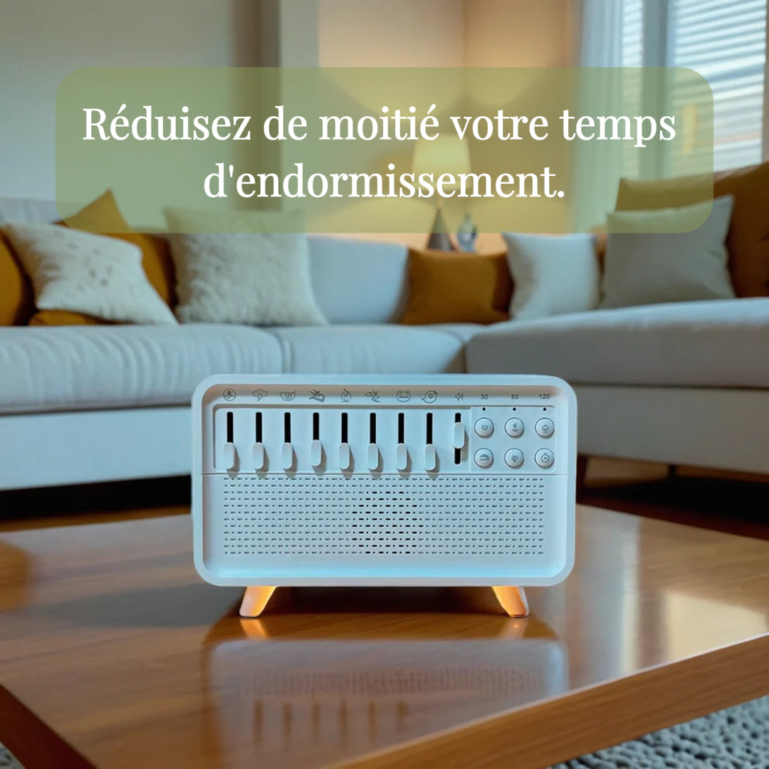 Grâce à sa combinaison unique de sons blancs apaisants et de brume douce, il aide à ralentir votre respiration, à calmer vos pensées et à signaler naturellement à votre cerveau qu’il est temps de se détendre.